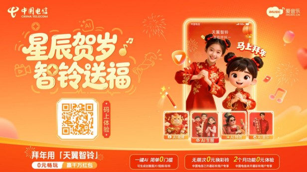天翼智鈴體驗(yàn)區(qū)吸引了往來乘客,大家紛紛駐足,掏出手機(jī)掃碼互動(dòng),體驗(yàn)僅用一張照片、一句祝福語,就能讓自己或家人成為馬年賀歲主角。AI文生視頻、AI圖生視頻,一鍵切換場景,海量模板可供選擇,一鍵生成個(gè)性化拜年視頻,無論是期盼“馬上有錢”,還是祝愿“龍馬精神”,簡單操作便能生成融匯國潮元素的創(chuàng)意開運(yùn)視頻,同時(shí)還能設(shè)置成專屬的來電彩鈴,讓遠(yuǎn)方的牽掛通過科技傳遞,讓新春祝福更具儀式感。